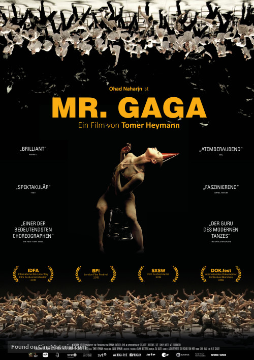 Mr. Gaga opowiada o genialnym choreografie Ohadzie Naharinie, wieloletnim szefie najsłynniejszego zespołu tańca współczesnego z Izraela - Batsheva Dance Company. Reżyser Tomer Heymann towarzyszył artyście przez 8 lat, aby ukazać jego życie i niezwykłą ewolucję jako tancerza, twórcy i człowieka. Heymann rejestrował zarówno jego życie prywatne, przebieg prób zespołu, jak i zajęcia z opracowanego przez Naharina języka ruchu - GAGA - umożliwiającego każdemu wyrażenie swoich emocji poprzez taniec. W połączeniu z niepokazywanym dotychczas materiałem archiwalnym oraz fragmentami tanecznych spektakli Batshevy dostajemy fascynującą historię człowieka, który zrewolucjonizował świat tańca współczesnego.