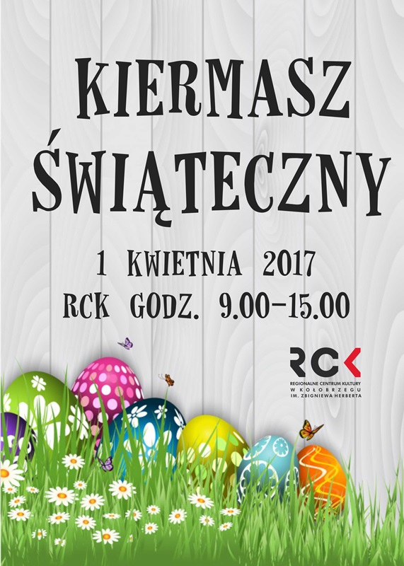 Zapraszamy do RCK dnia 1 kwietnia 2017 roku o godzinie 10:00 na Kiermasz Świąteczny.
