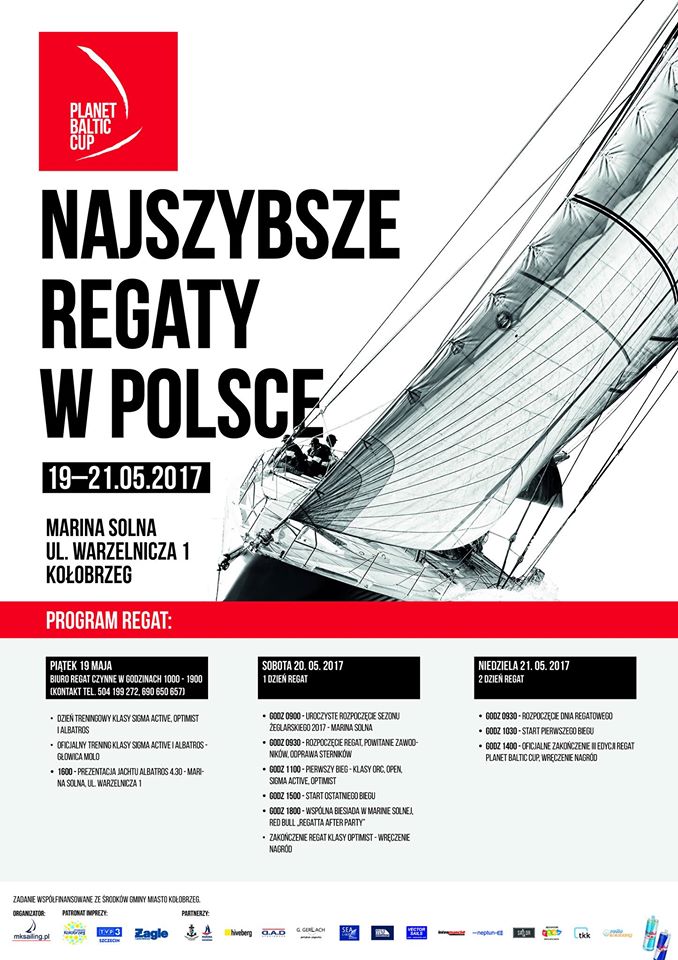 Partnerami regat są: Zarząd Portu Morskiego Kołobrzeg, Marina Solna Kołobrzeg, DAD Sportswear,