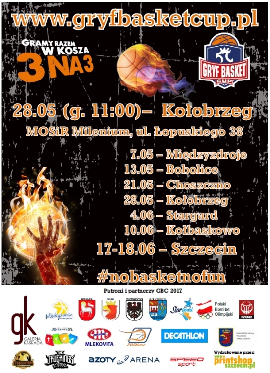 Gryf Basket Cup 2017 kontynuuje rozgrywki w Kołobrzegu. Gramy o zwycięstwa, satysfakcję, nieśmiertelność i nagrody przy kompleksie sportowym Milenium w Kołobrzegu (boisko polbrukowe za halą Milenium) niedziela 28.05.2017 r.
